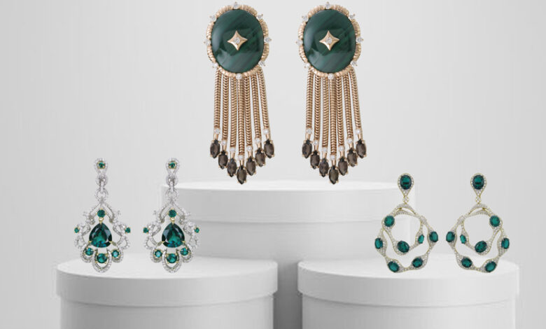 لسهرات صيف 2021.. أجمل موديلات أقراط أذن طويلة مُرصَّعة بالزمرد
