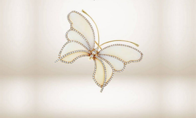 ومن أشهر التصميمات التي تبحث عنها العروس، بروش الفراشة، والذي تم طرح تصميمات مختلفة منه لفراش تفرد جناحيها أو ترفرف بهما من الذهب بلونيه الأبيض والأصفر، ومرصعة بالألماس والأحجار الكريمة الملونة.