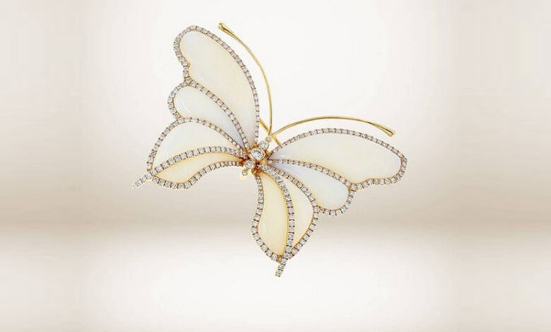 تميزت تلك البروشات بتصاميمها الفريدة المستوحاة من الطبيعة الساحرة، سواء تلك المصنوعة من الذهب الأبيض أو الأصفر، وجميعها مرصعة بفصوص الألماس البرّاقة.